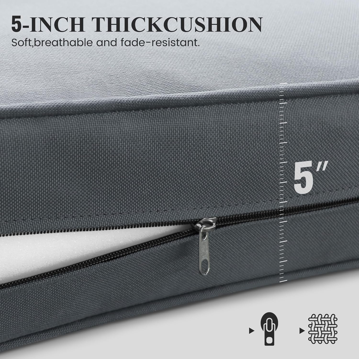 - 5 INCH SUPER CUSHION: Our metal patio furniture set 5-inch thick sofa cushion used high-density sponge is softer and breathable, has rebound force, which is not easy to collapse or deform. Olefin cover material is waterproofing and easy to clean. The removable cushion covers with zipper design makes cleaning convenient.